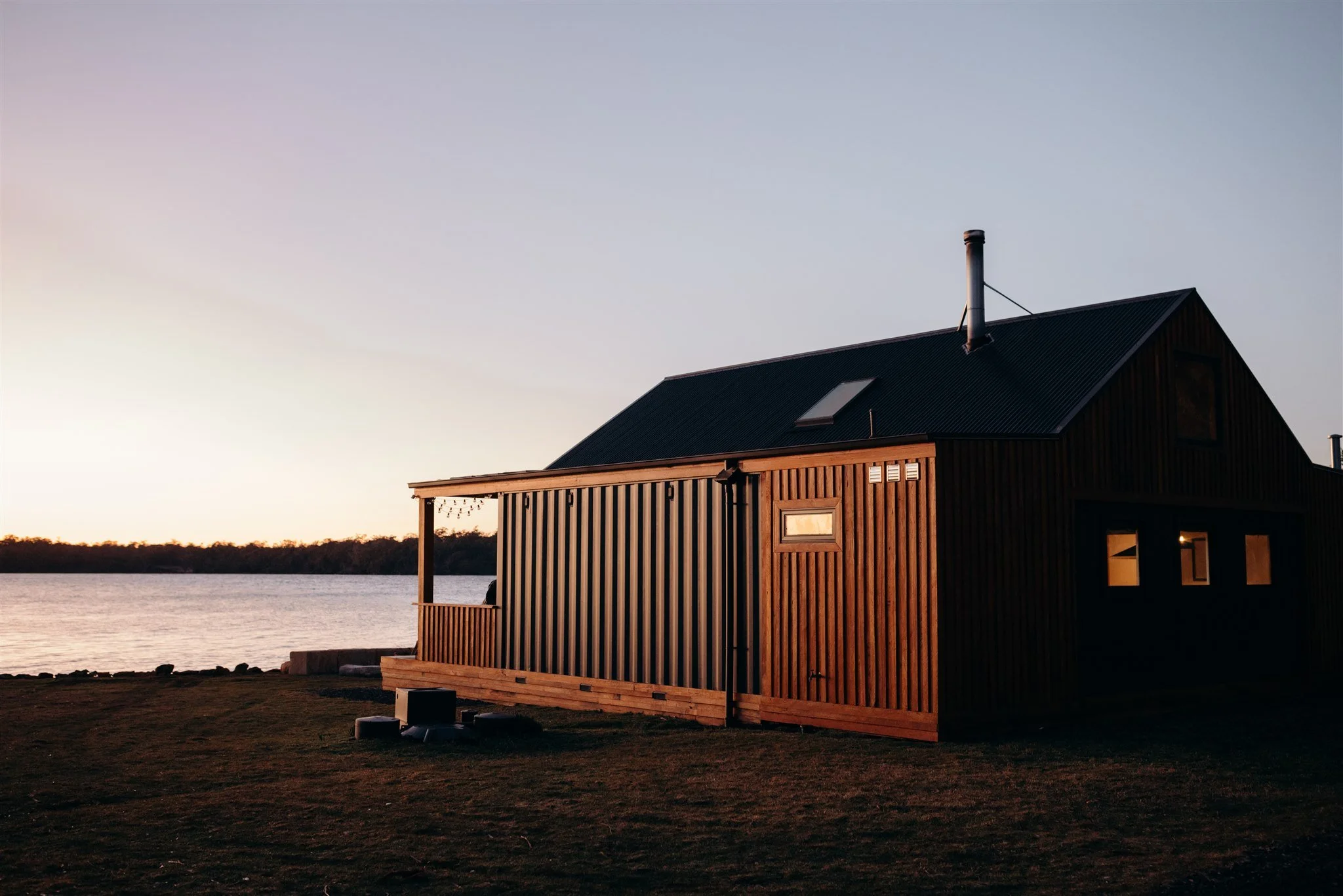 The Doctor’s feels stitched into Tasmania’s story — a contemporary chalet built from shipping containers and reclaimed timber on the shores of Lake Crescent. Hosts Dave and Nicole have reimagined their family’s century-old connection to the area, creating a retreat that balances history with calm. Inside, floor-to-ceiling glass captures endless water views; outside, a private jetty, kayaks, and firepit invite long, quiet days. Natural textures and clean lines set a soothing tone, while small details — from local art to the occasional visit from Dale the sheep — make it feel unmistakably personal. Paddle at sunrise, watch stars scatter across the lake, or visit nearby Oatlands for heritage buildings and slow brunches. At The Doctor’s, the past lingers softly in the air, wrapped in the luxury of stillness.