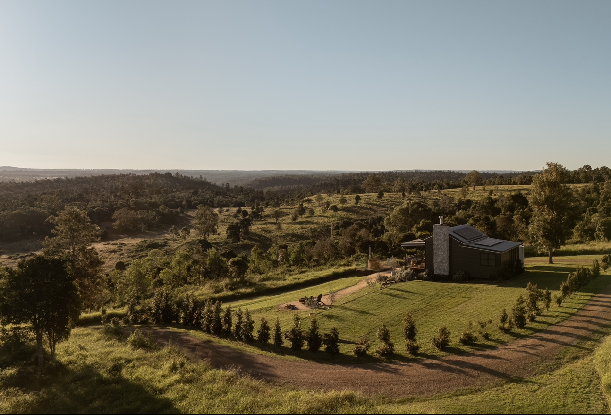 High on a ridgeline in Queensland’s South Burnett, The Firebreak invites you to slow down and breathe again. Two architect-designed cabins rest quietly among 160 acres of regenerative farmland, watching clouds drift across the Bunya Mountains. Built by hosts Ace and Kylea, the retreat takes its name from the firebreak that once protected the property — now a symbol of calm and renewal. Each cabin is a masterclass in pared-back design, where timber tones and soft light draw nature in at every angle. Days unfold easily: coffee on the deck, a dip in the wood-fired hot tub, or a long soak in the outdoor bath beneath the Milky Way. Wander to nearby Coomba Falls, explore Bunya Mountains trails, or stay put and watch the sky turn amber. At The Firebreak, stillness feels like luxury.