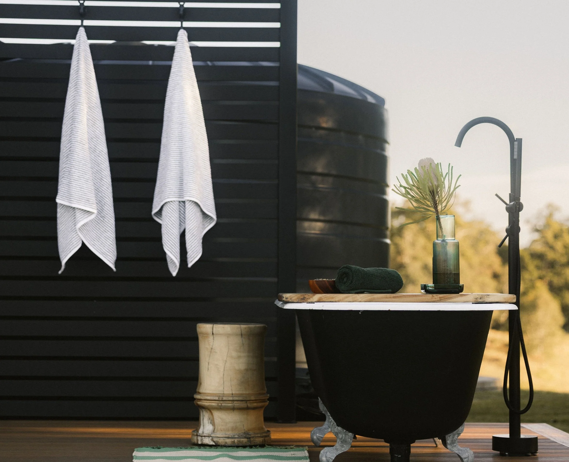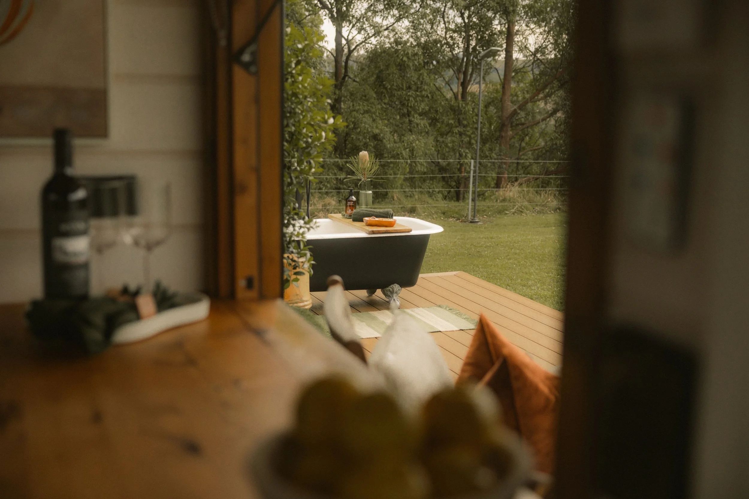 Set high in the rolling hills of the Northern Rivers, The Hidden Speckle is a two-bedroom tiny home designed for deep rest and reconnection. Completely off-grid yet rich in comfort, it’s framed by views of Mt Nadi and lush farmland, with nature as your only neighbour. There’s a restored 1940s clawfoot bath waiting under open skies, and a wide covered deck designed for meals that last all afternoon. Between picnics with Palomino horses sharing the property, exploring nearby waterfalls and markets, or simply watching wallabies and birdwing butterflies flit past, the days take care of themselves. Come evening, sink into the outdoor bath and watch the stars appear one by one, the valley quiet settling around you like a blanket.