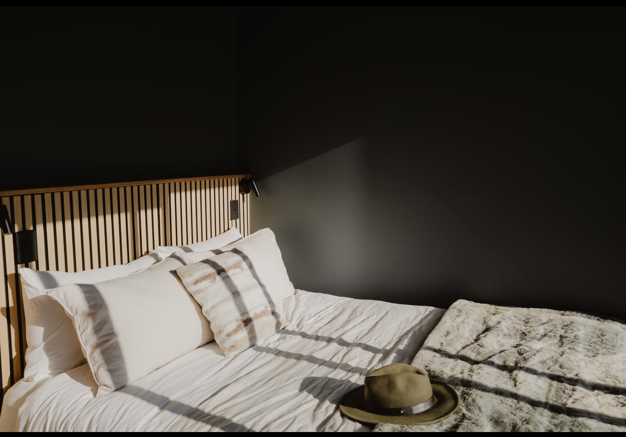 Born from a rusting shipping container, Willowbrook Retreat is proof that small spaces can hold grand stories. Hosts Rhiannon and Matt transformed the structure into a warm, light-filled sanctuary that sits gently within the landscape — willow trees swaying, mountains on the horizon, a creek murmuring below. Inside, natural textures and soft linen create calm, while huge windows frame ever-changing views. The king bed faces sunrise; the outdoor tub faces the stars. Days roll easily between deck coffees, wine tastings in Cromwell, and marshmallows toasted by the firepit. Highland cows wander past, the air smells of grass and woodsmoke, and time slows to match the rhythm of the land. Crafted by hand and heart, Willowbrook offers a rare mix of design and soul — a little luxury, deeply rooted in nature.